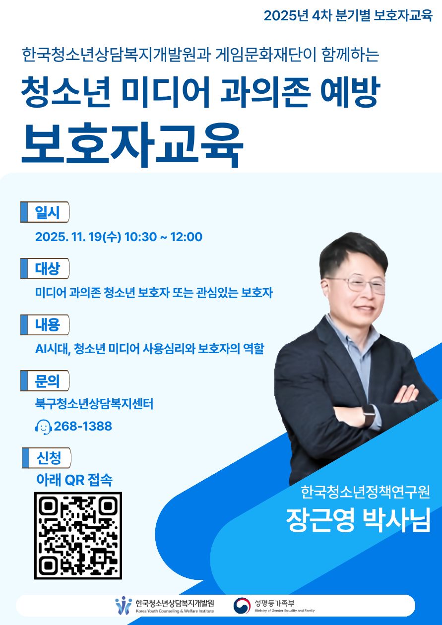 ❍ ÀϽà : 2025. 11. 19.(¼ö) 10:30 ~ 12:00❍ ÁÖÁ¦ : AI½Ã´ë, û¼Ò³â ¹Ìµð¾î »ç¿ë½É¸®¿Í º¸È£ÀÚÀÇ ¿ªÇÒ❍ °»ç : Àå±Ù¿µ ¼±ÀÓ¿¬±¸À§¿ø(Çѱ¹Ã»¼Ò³âÁ¤Ã¥¿¬±¸¿ø) ❍ ½Åû: https://naver.me/GNReymqc ¶Ç´Â Æ÷½ºÅÍ QR (11/6±îÁö Á¢¼ö ¿¹Á¤)¸¹Àº °ü½É ºÎʵ右´Ï´Ù :)