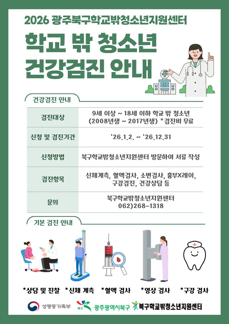Çб³ ¹Û û¼Ò³âÀÇ °Ç°ÇÑ ¼ºÀåÀ» À§ÇØ ¹«·á °Ç°°ËÁøÀ» Áö¿øÇÕ´Ï´Ù.