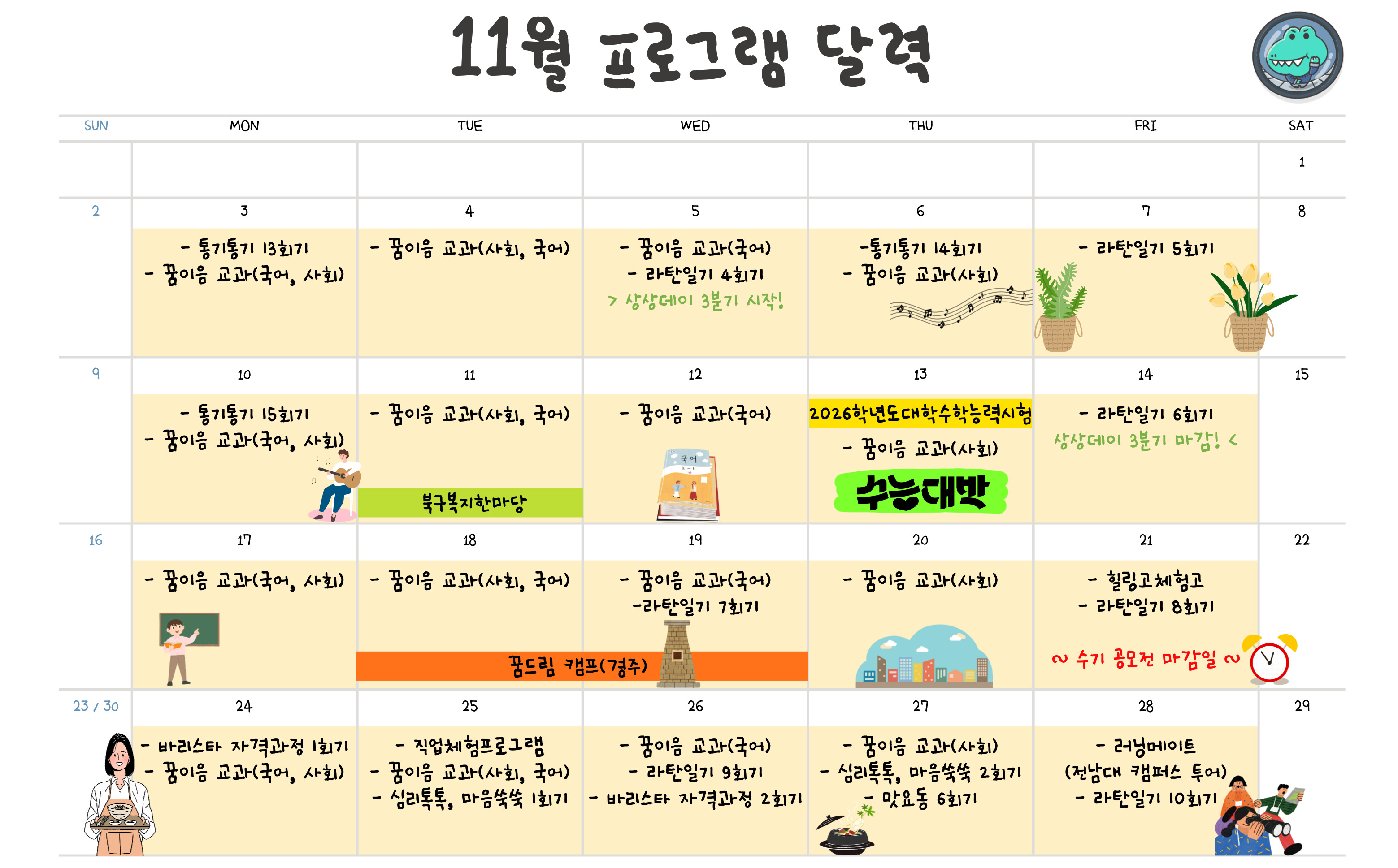 [ºÏ±¸²Þµå¸² 11¿ù ÇÁ·Î±×·¥ ¾È³»]11¿ù ÇÑ´Þ ÇÁ·Î±×·¥ ´Þ·ÂÀÔ´Ï´Ù~!û¼Ò³âµéÀº Âü¿©¿¹Á¤ ÇÁ·Î±×·¥ ÀÏÁ¤ È®ÀÎ Àß ÇØÁֽðí, ÇÁ·Î±×·¥ÀÌ º¯°æ ¶Ç´Â Ãß°¡µÉ ¼ö ÀÖÀ¸´Ï ¿ÀÇÂäÆÃ¹æ È®ÀÎ ÀßÇØÁÖ¼¼¿ä~!